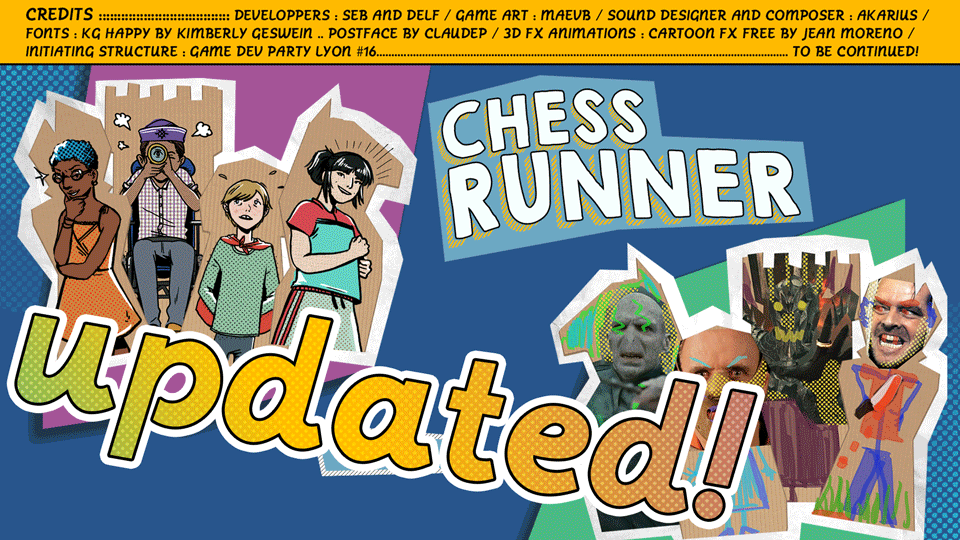 - July 05, 2021 by maevb3#english, #arcade, #chess, #runner, #tutorial, #polish, #submission, #animation[EN] Hello to you, fellow gamers! I'm maev , the game artist for Chess Runner , and I'm here to announce you a big new upload that has been published and uploaded the last weeks :) Let me present you... Continue reading